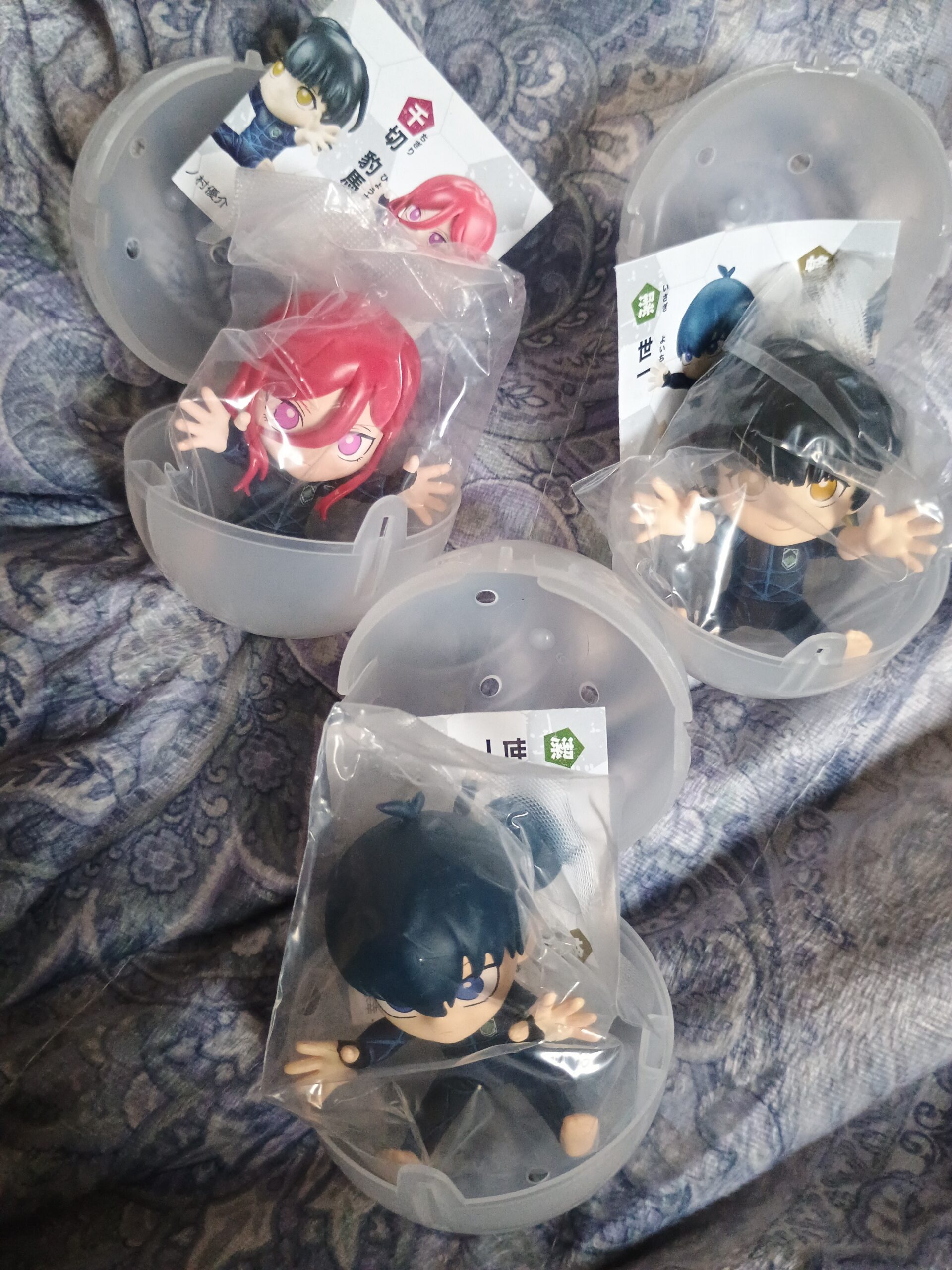 Le set complet de 3 figurines Blue Lock, les gacha sont neuf avec étiquettes et capsules.